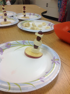 In the same post as the Valentine’s card, I describe how I celebrated Dr. Seuss week by making Cat in the Hat hats with fruit. The kids were able to cut the bananas themselves! My students eat SO well – the love fruit!