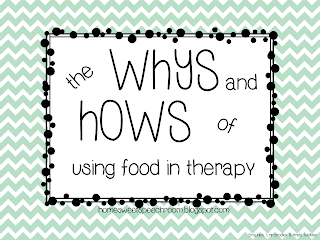 I have used food in therapy from time to time. Mostly when practicing following directions and sequencing goals.